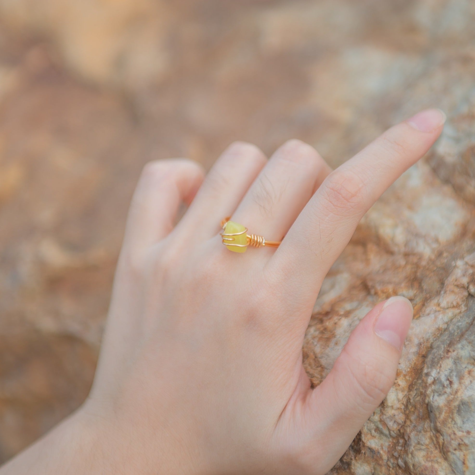 Each crystal is hand-picked, then polished to reveal its sheer beauty. They’re carefully set in tarnish resistant copper wire, giving them the edge that showcases their power and natural beauty. The energy of each crystal is blended with the metal, resulting in a completely unique look that will empower you wherever your day takes you. By wearing your Crystal ring with you on your finger, you can move forward knowing that you have the strength to conquer any obstacle- whether it be a fear or a challenge.