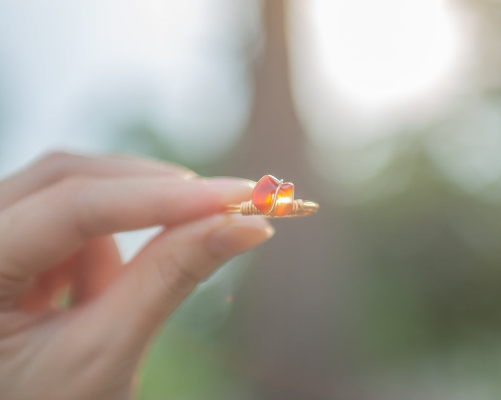 Each crystal is hand-picked, then polished to reveal its sheer beauty. They’re carefully set in tarnish resistant copper wire, giving them the edge that showcases their power and natural beauty. The energy of each crystal is blended with the metal, resulting in a completely unique look that will empower you wherever your day takes you. By wearing your Crystal ring with you on your finger, you can move forward knowing that you have the strength to conquer any obstacle- whether it be a fear or a challenge.